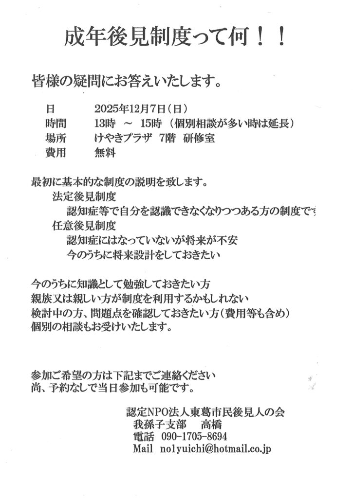 ● 講座内容 : 青年後見人制度って何!!